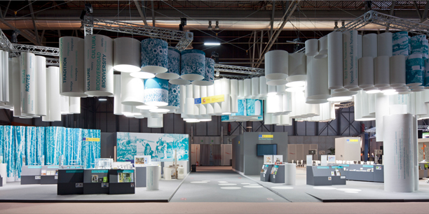 Recycled Chandelier at Madrid Fitur Temporary Pavilion, a competition winning entry this year. It was an installation designed for the Spanish Ministry of Agriculture, Food and Environmental Affairs. It reminds me of a landscape made out of cardboard tubes, turned upside down, in very mathematical forms and shapes. It’s a very simple idea, very cleverly executed. It’s eco-friendly design also which is one attribute the practice concentrates on.