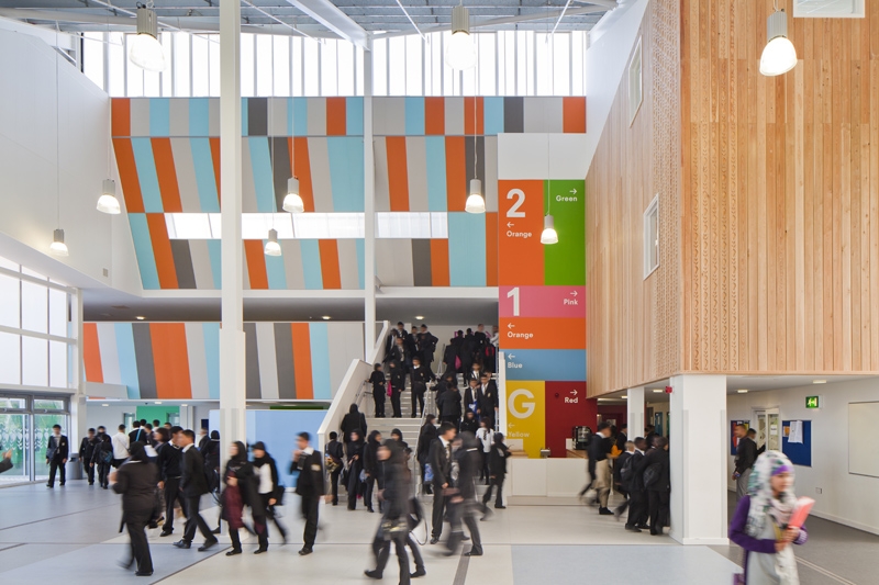 Broadway Secondary School, Birmingham, where every space have been renewed or rebuilt creating a vibrant and stimulating study environment.