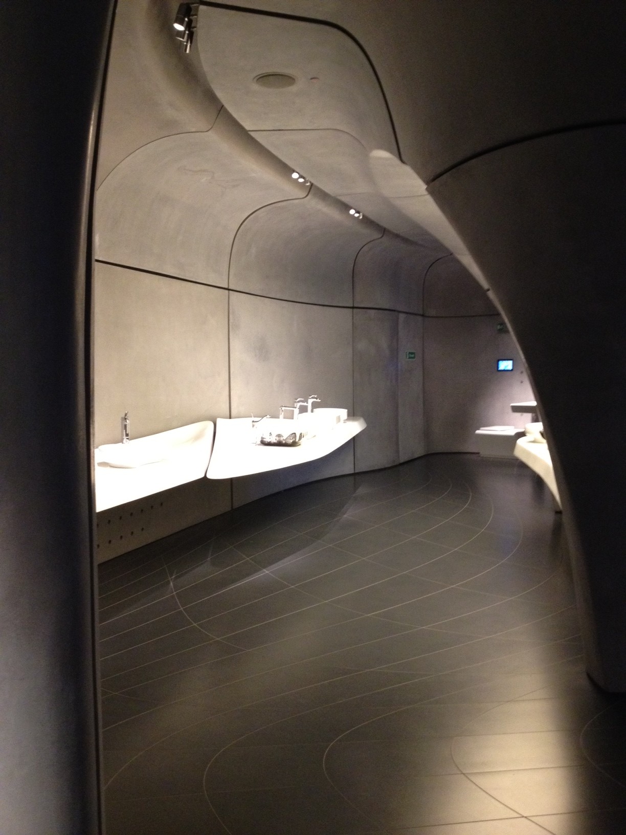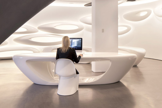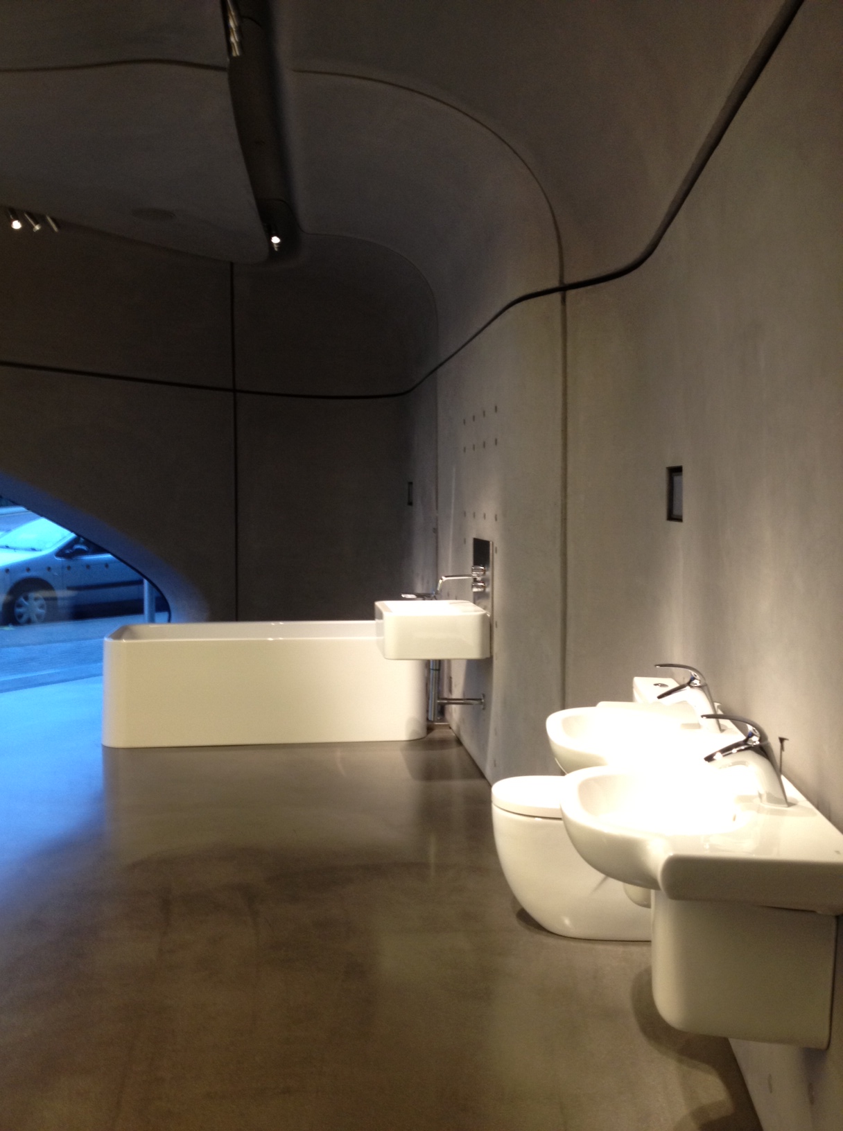 Zaha Hadid is very inspired by water, and the concept for this building presents this aswell. Being a bathroom company’s showroom, it worked completely well, the space expressing openness and adaptability, innovation and modernism. The space was created wisely that is is much more than just a showroom, it incorporates many media and social aspects within this space and can be used in many more forms. There’s a continuous, uninterrupted interweave from the facade, which in itself opens up the display environment form the front.