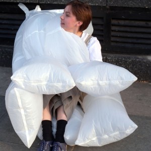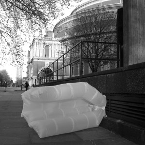 Air went project: Bethany was inspired by the hot air coming out of an air went on side of a big office building, which shows how everything around us can be an inspiration. I also used to walk past an air went every day on my way to college, and in the winters I used to love that few seconds of hot that I got from it. That must have been how Bethany felt. But on her way to university, she was very inspired by it, and she didn’t let the opportunity pass to create something out of nothing. So she though of a way to emphasise this travel of air and she became very interested in the subject from that point on. As a result, she put together plastic bags and stuck it on the the air went. This created this very out of place but original objects on the streets of London.