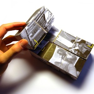 Folding cubes: 8 cubes, with pictures on it, put connected in a way that it can refold and refold, still creating a whole image. It is a very small as an object and a project, but it catch my attention and interest very much.